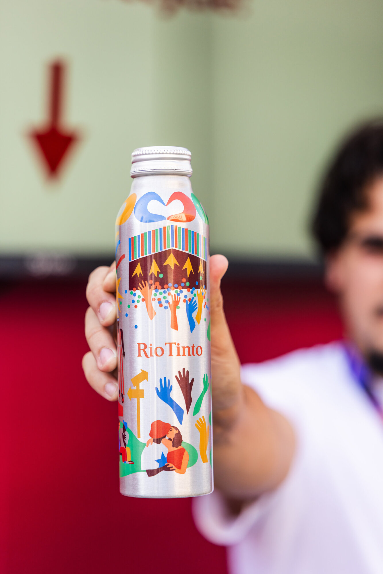 L’installation, située au cœur du site, reprenait les codes graphiques de la marque : un décor vibrant et immersif inspiré des lignes topographiques colorées issues du de la charte graphique de Rio Tinto. Cette identité visuelle forte permettait d’unifier l’expérience et de faire rayonner la présence de la marque dans le paysage du festival.