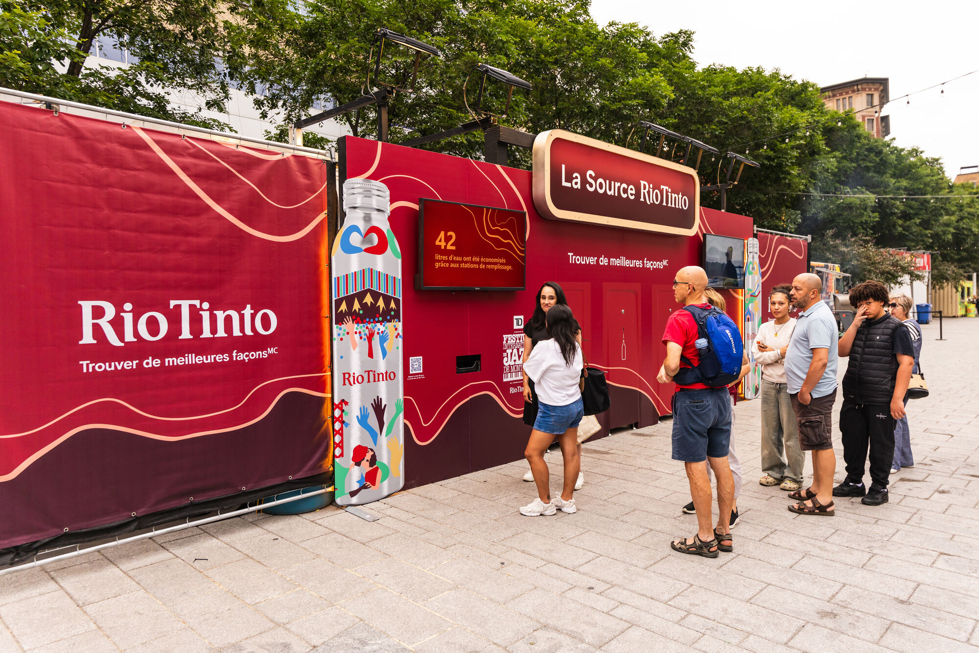 Pour le Festival International de Jazz de Montréal, j’ai conçu La Source Rio Tinto, une activation simple, utile et porteuse de sens. L’objectif était d’offrir aux festivaliers un accès facile à de l’eau potable tout en valorisant l’engagement de Rio Tinto envers la communauté et le développement durable.